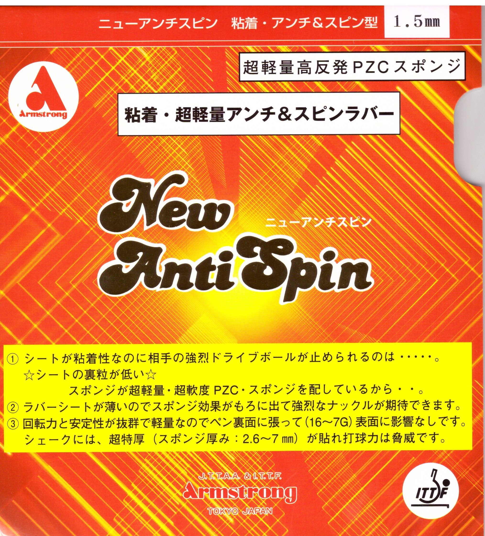 Armstrong New Anti-Spin хорош для блока, удара и даже атаки. Его поверхность выглядит как обычная резина, и когда вы ударяете по мячу, она звучит как обычная резина.